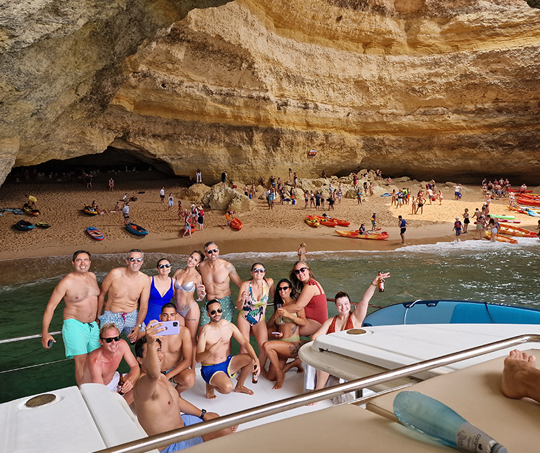 JOIN US for a luxury yacht cruise from Vilamoura Marina to the world famous Benagil Cave. It includes a swim stop on a private beach for paddle boarding and snorkeling, followed by a selection of gourmet tapas and fine Portuguese wine. Enjoy an exclusive day on the water tailored for discerning clients seeking elegance and fun.